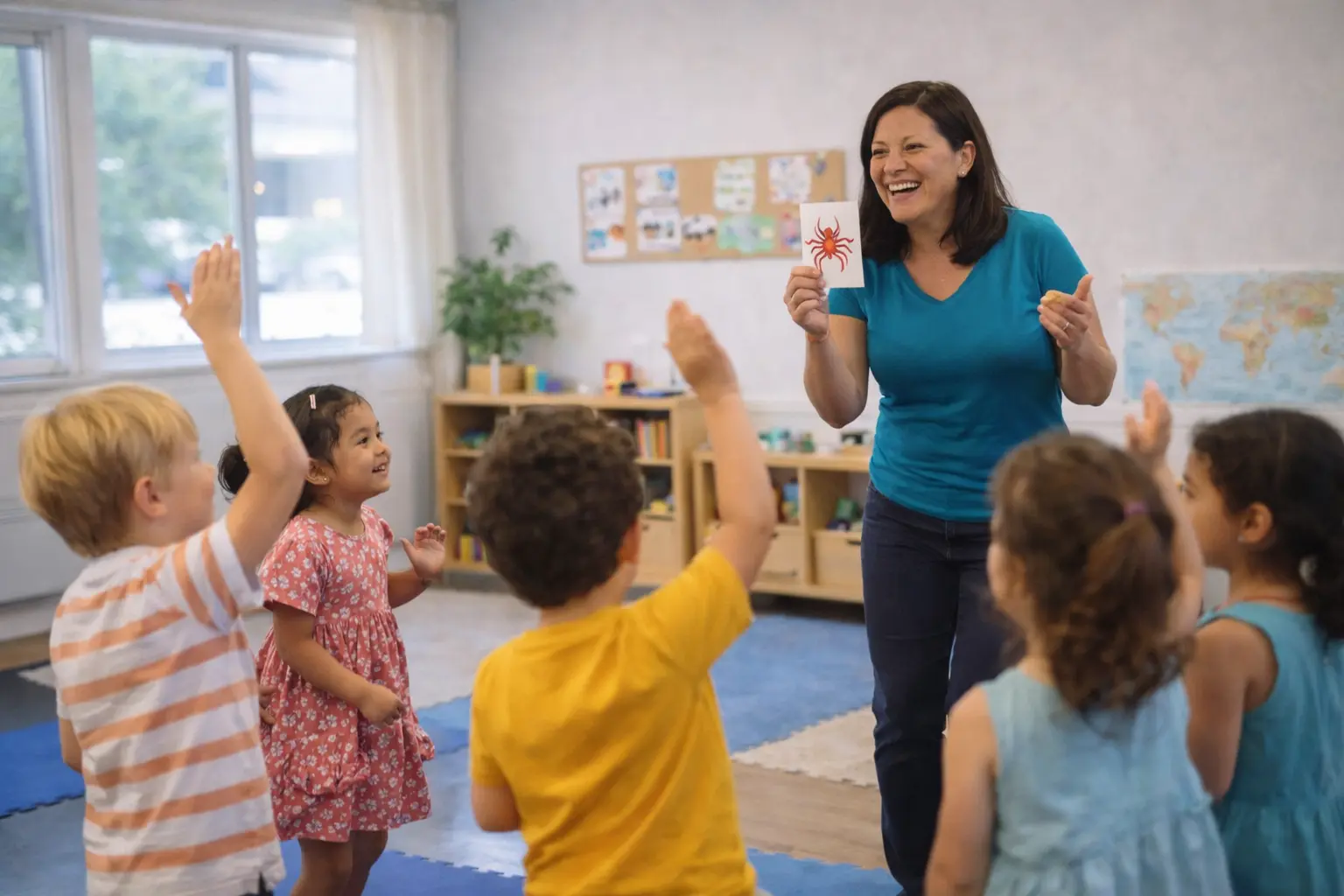 Children are encouraged to join in at their pace—building confidence naturally through repetition and meaningful play.